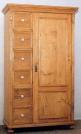 Garde-manger en pin de style Rustique, ciré 1 porte à panneau 5 tiroirs, boutons en bois pieds ronds, pas démontable
